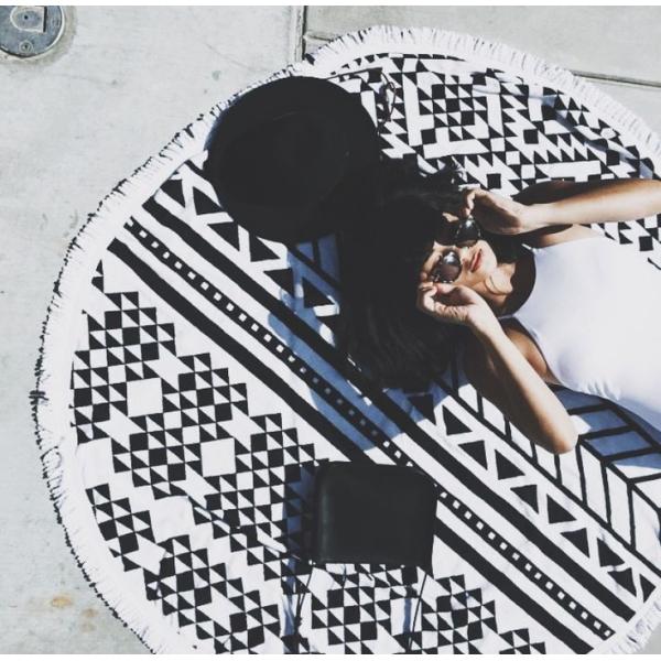 150CM 100% Cotton Roud Bohemia Printed Tassel Knitted Beach Towel Aztec round beach towel Images |